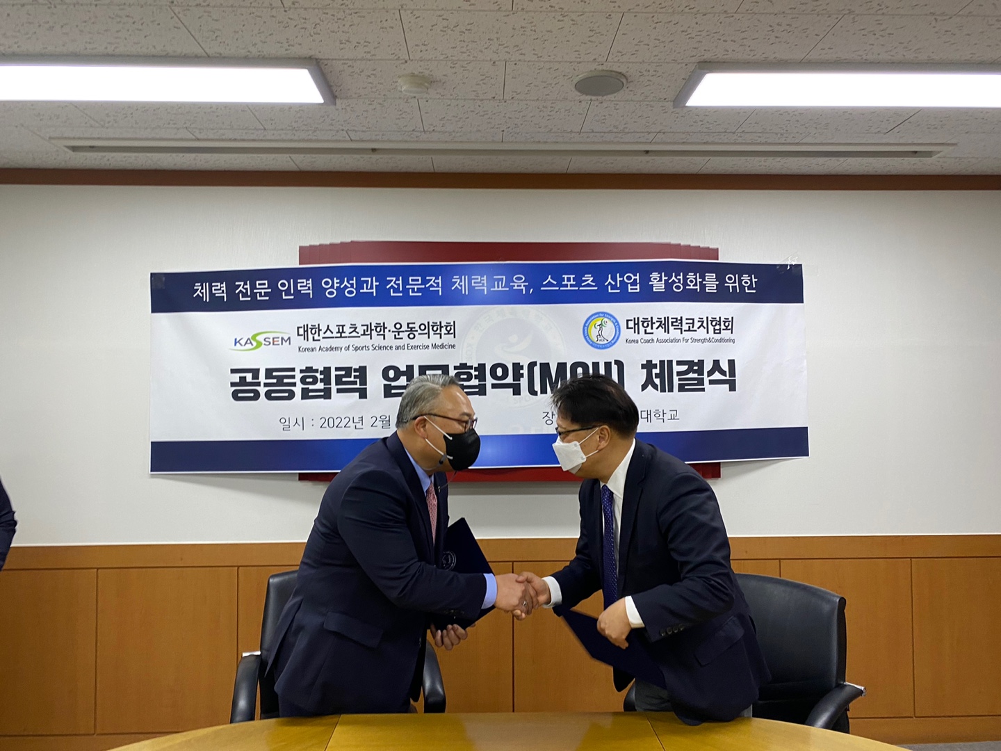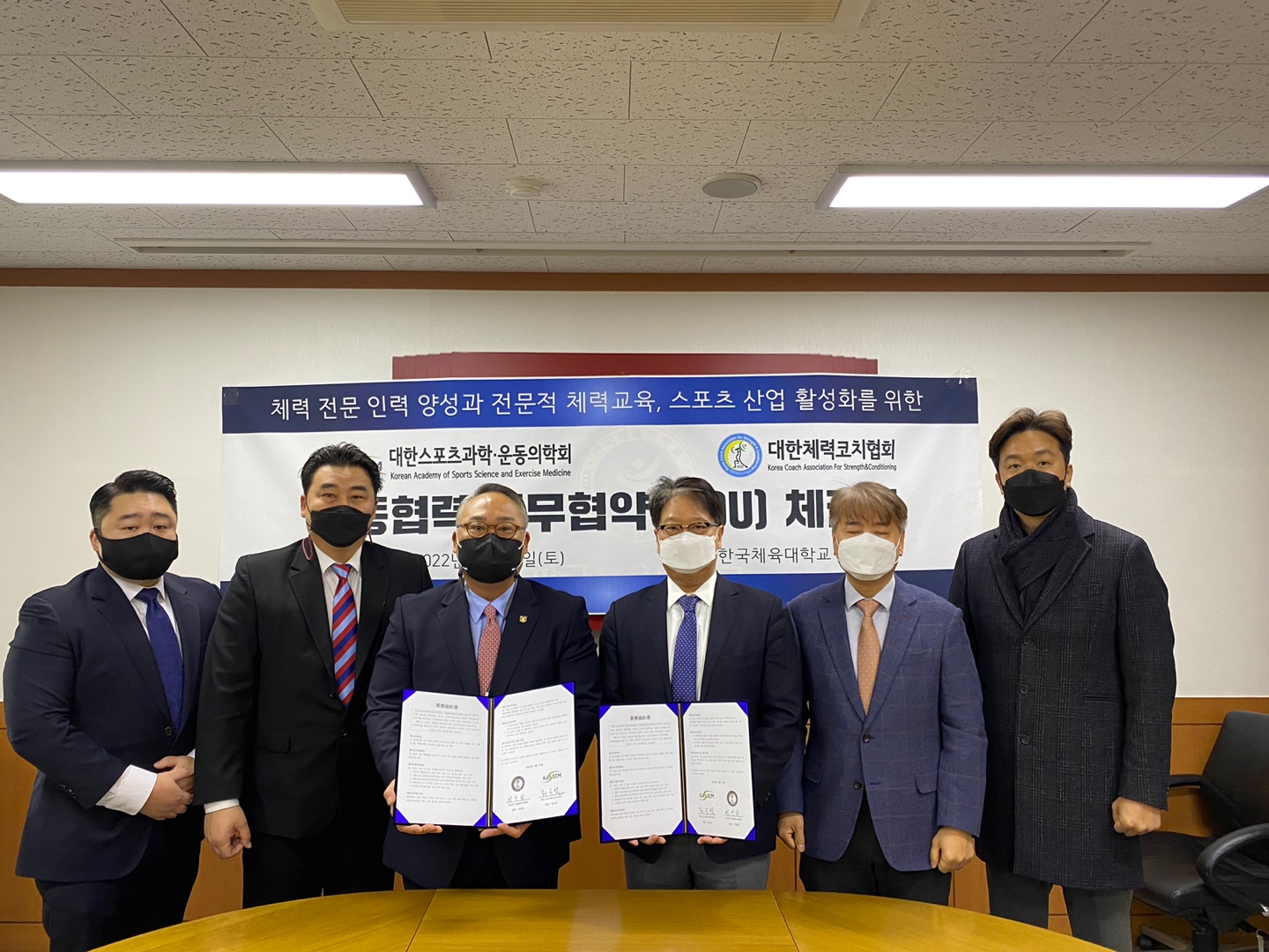 고생해주신 염동철 부회장님, 천우호 위원님, 이동률 사무국장님을 비롯하여 본 협회와의 협력을 위해 노력해주신 대한스포츠과학·운동의학회 최은석 회장님, 이규훈 이사장님, 김태규 이사님께 감사드리며 양기관의 동반성장을 위해 최선을 다하겠습니다.
